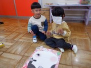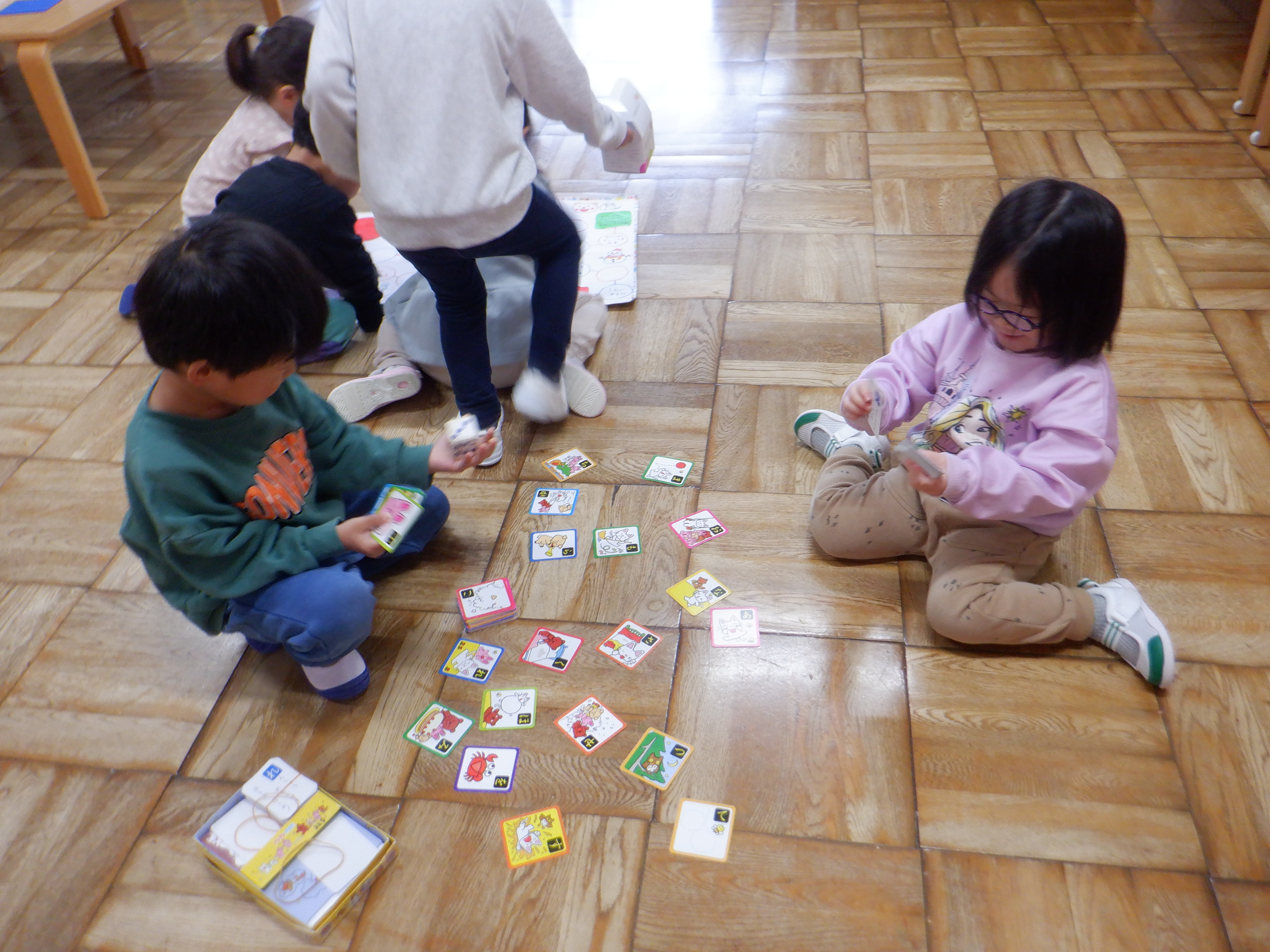 字がわからない子たちも絵を見ながら取ったり、読める子が「これこれ!」とそ~っと教えてあげたりして