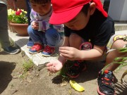 花壇をずらしてみると、たくさんのだんごむしを発見!