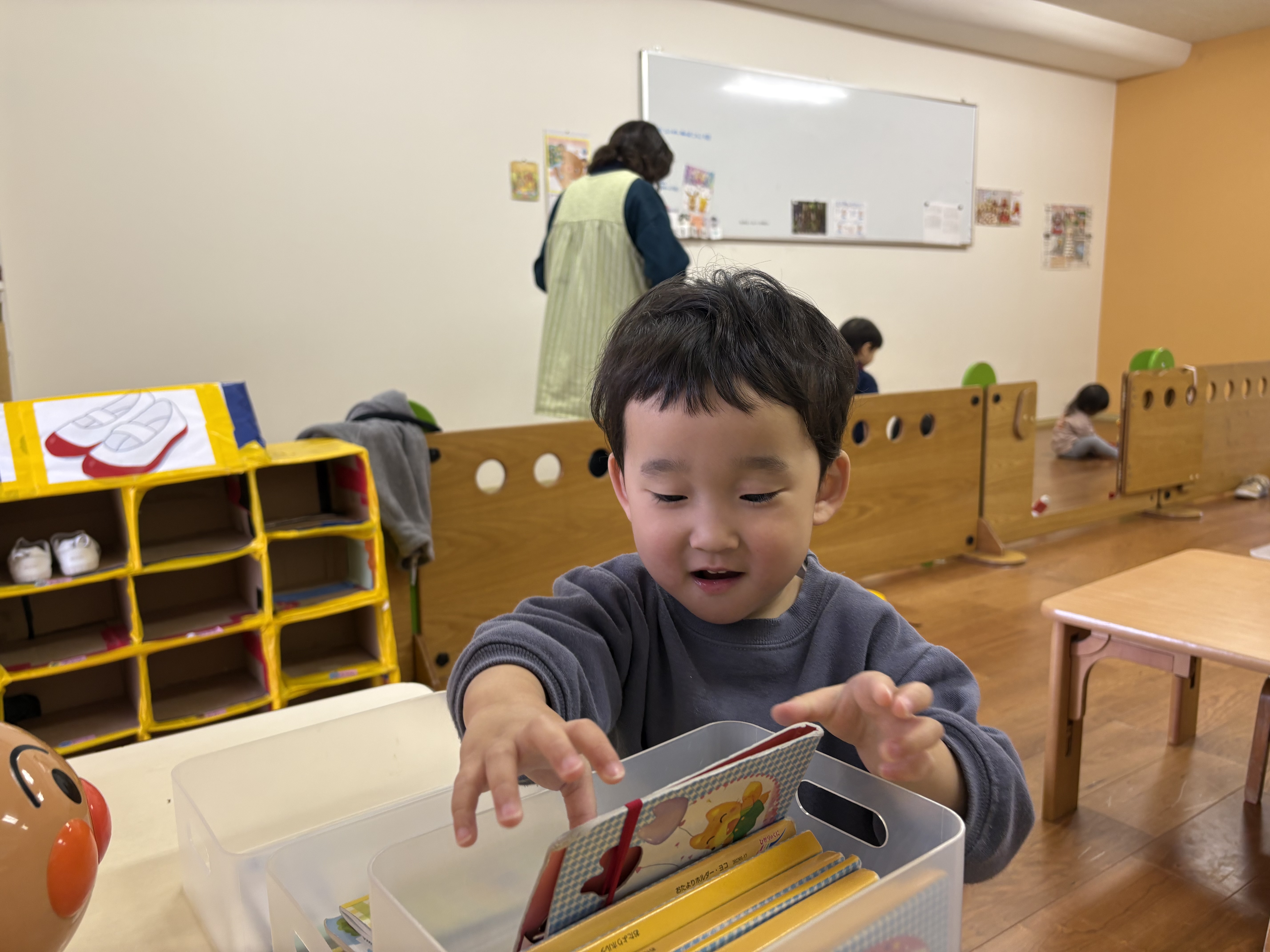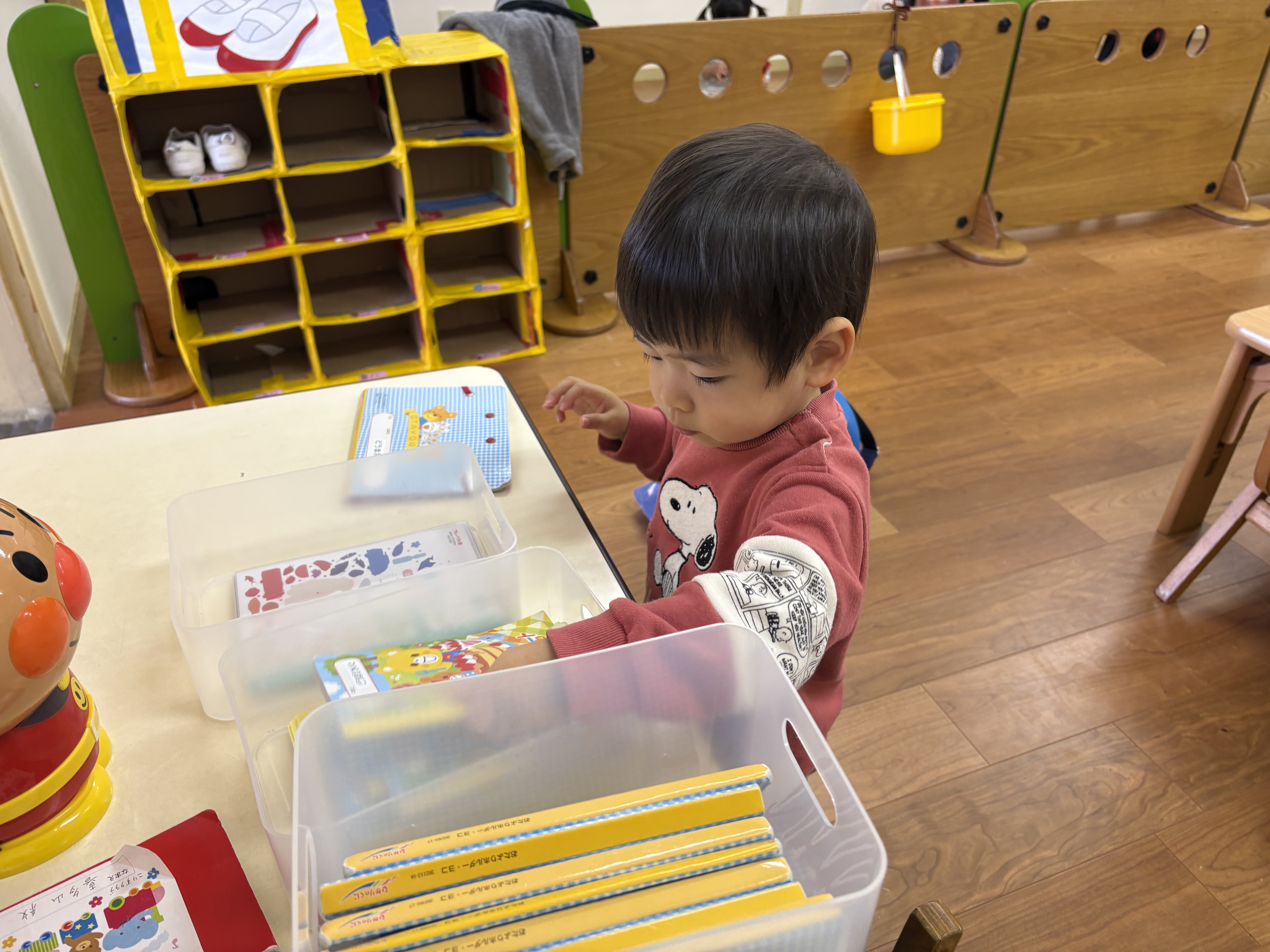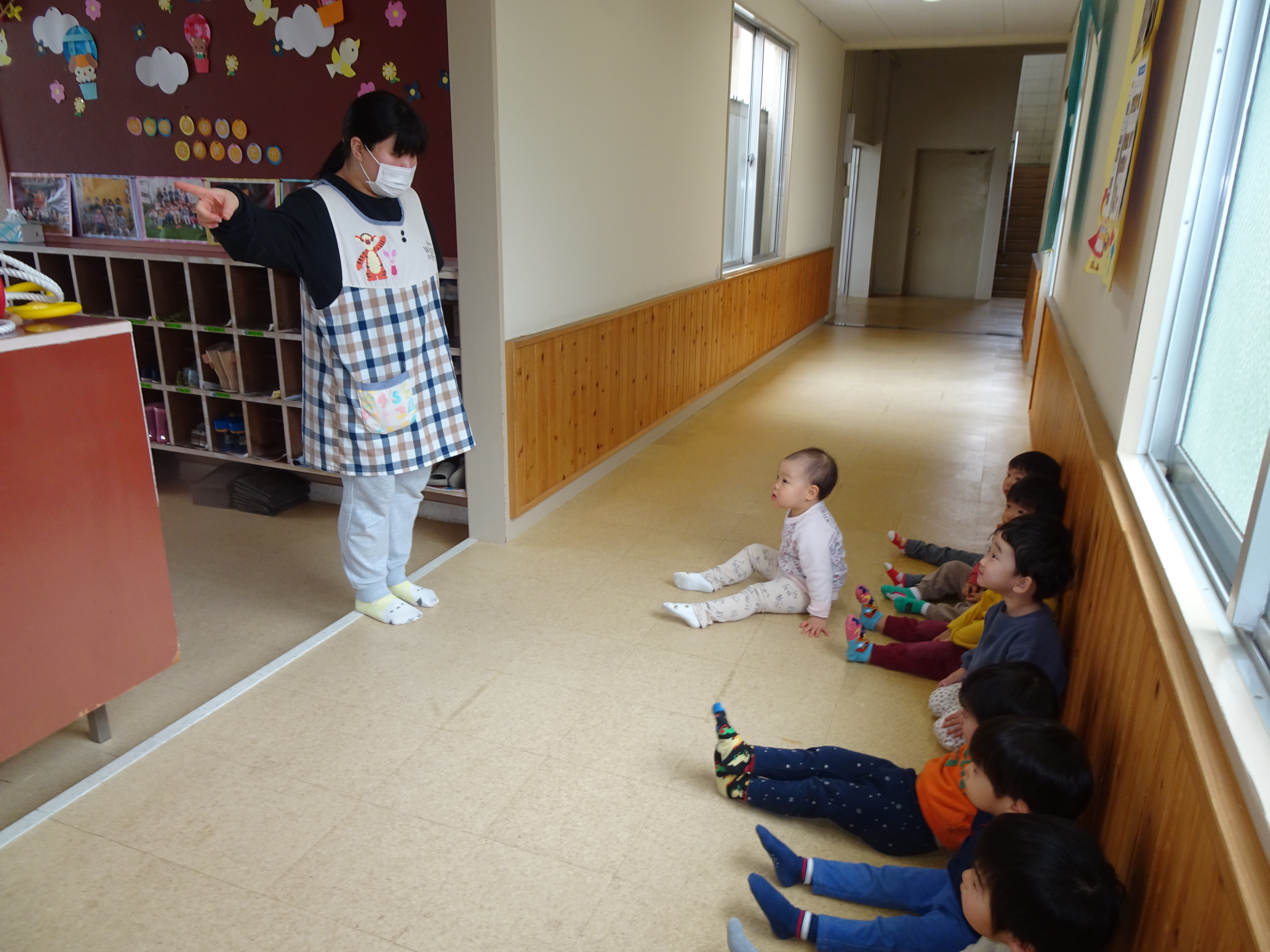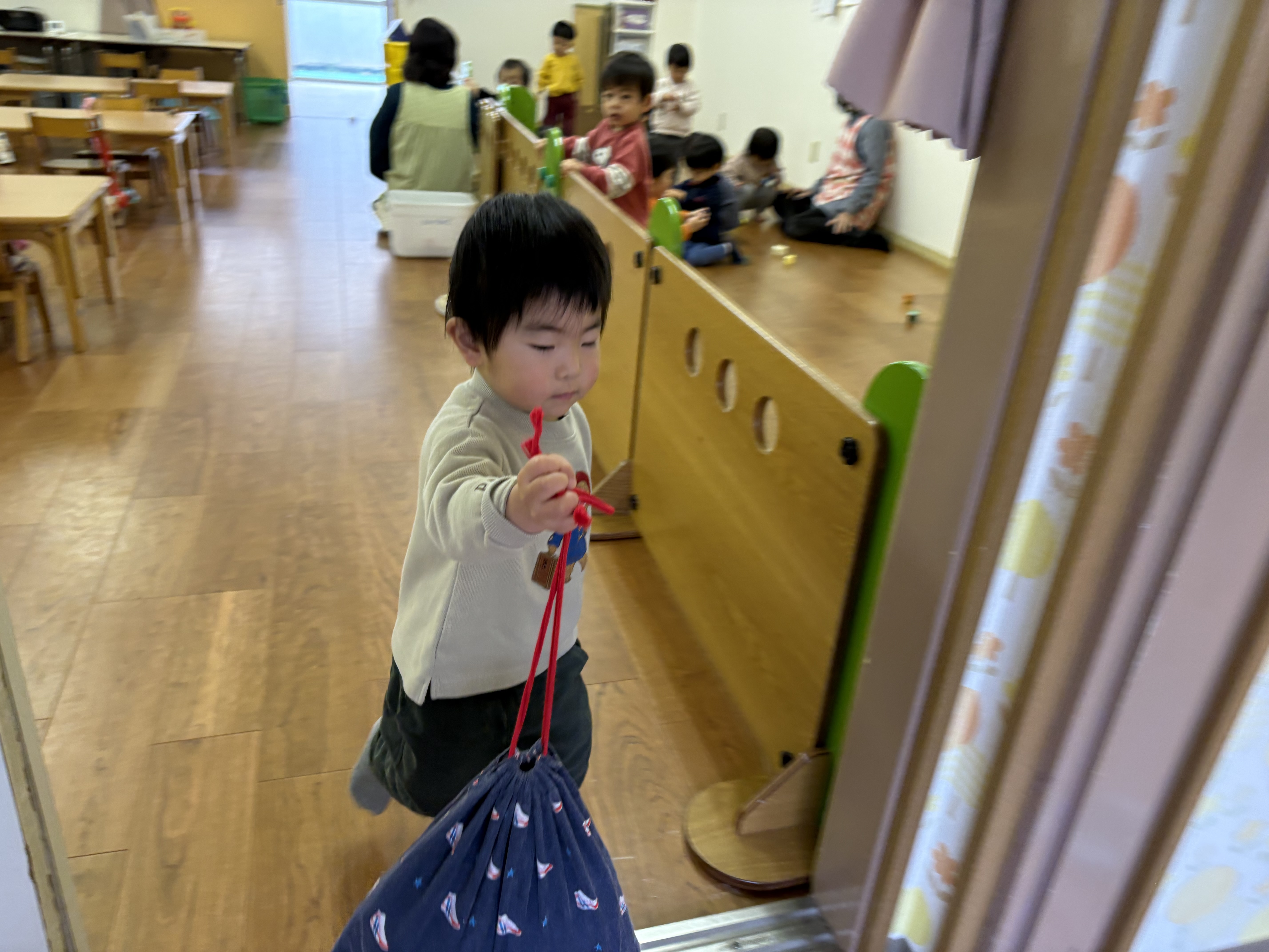 その後はすみれさんのお部屋で遊びました。0歳児さんも一緒に遊びましたよ。4月からドキドキわくわくですね☆